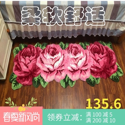 手工精品4朵长条粉红玫瑰刺绣极速体育网址_jrs篮球直播_jis低调看直播.玫瑰地垫.床边垫,飘窗垫卫浴