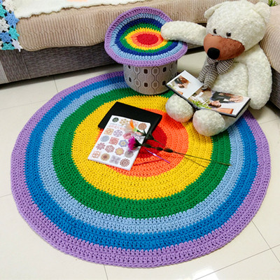纯手工钩编织极速体育网址_jrs篮球直播_jis低调看直播儿童房幼儿园彩虹棉绳地垫宝宝爬行垫 全国包邮
