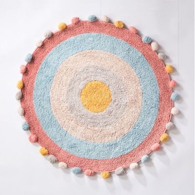 韩国进口 彩虹流苏球绒绒棉线防滑圆地垫/儿童圆形极速体育网址_jrs篮球直播_jis低调看直播 三色可选