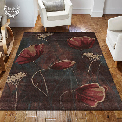 水墨艺术现代简美新中式郁金香田园风格家用茶几毯大花朵深色极速体育网址_jrs篮球直播_jis低调看直播