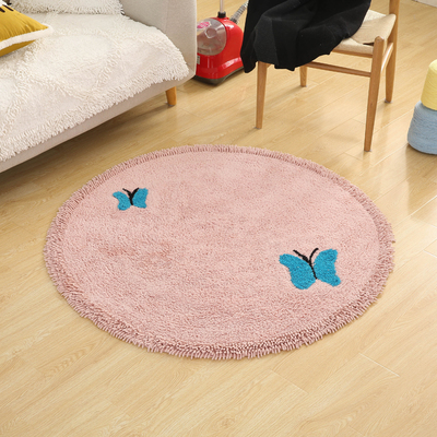 盛太乐居蝴蝶纯棉圆形地垫少女心卧室极速体育网址_jrs篮球直播_jis低调看直播床边毯电脑椅地垫可水洗