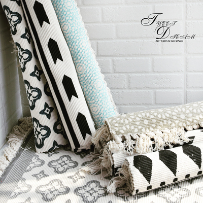 北欧风编织棉布极速体育网址_jrs篮球直播_jis低调看直播手工客厅茶几卧室床边流苏地垫防尘吸水垫