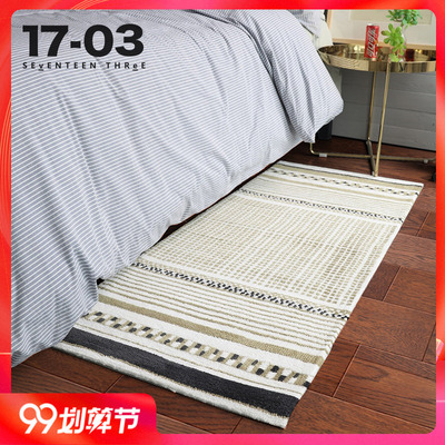 北欧风格床边极速体育网址_jrs篮球直播_jis低调看直播 时尚几何地垫家用卧室满铺现代简约床前床尾毯