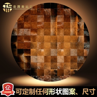 定制奢华北欧奶牛皮圆形极速体育网址_jrs篮球直播_jis低调看直播客厅卧室茶几书房纯手工真皮拼接地垫
