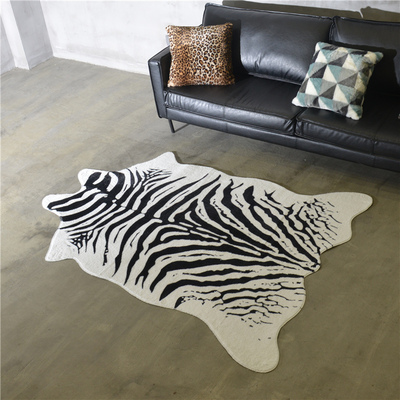 斑马纹北欧美式牛皮极速体育网址_jrs篮球直播_jis低调看直播 个性黑白客厅卧室沙发茶几装饰拍照地垫