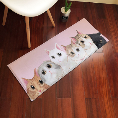 可爱卡通猫咪卧室床边长条绒面极速体育网址_jrs篮球直播_jis低调看直播 进门垫地垫厕所门口吸水脚垫
