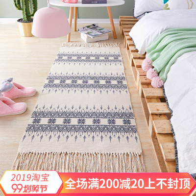 波西米亚极速体育网址_jrs篮球直播_jis低调看直播长方形棉麻地垫民族风手工编织客厅茶几毯卧室床边毯