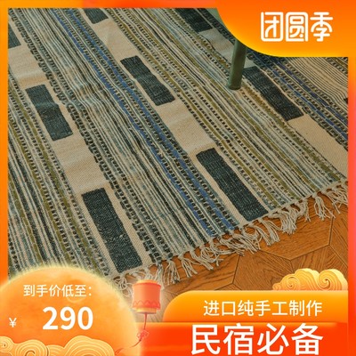 印度进口手工编织极速体育网址_jrs篮球直播_jis低调看直播北欧现代简约做旧全棉几何挂毯茶几民宿必备