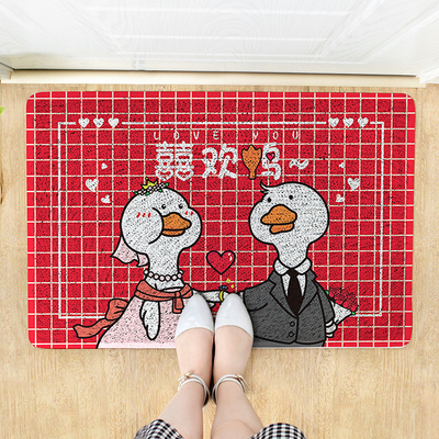 起贝家红色喜庆结婚地垫进门极速体育网址_jrs篮球直播_jis低调看直播爱你鸭婚房门口玄关蹭灰脚垫门垫